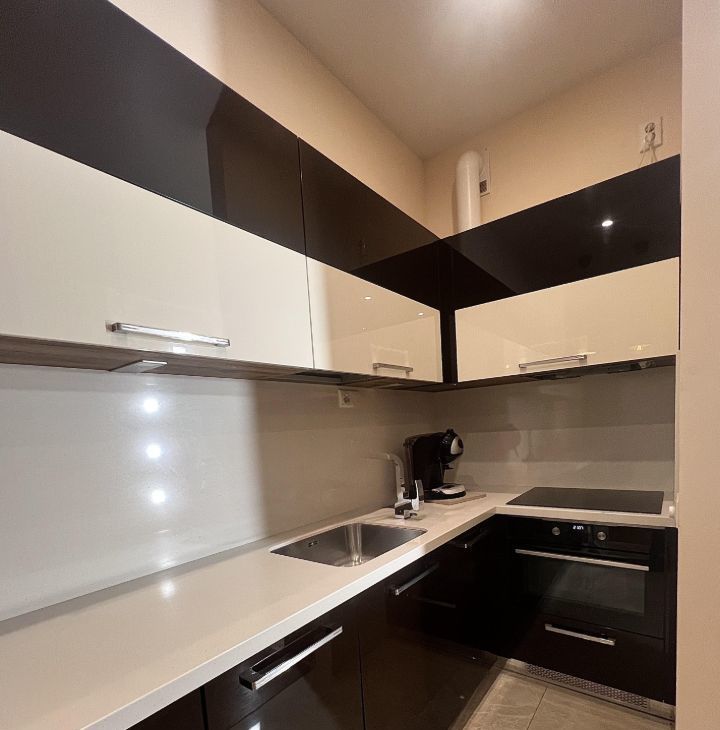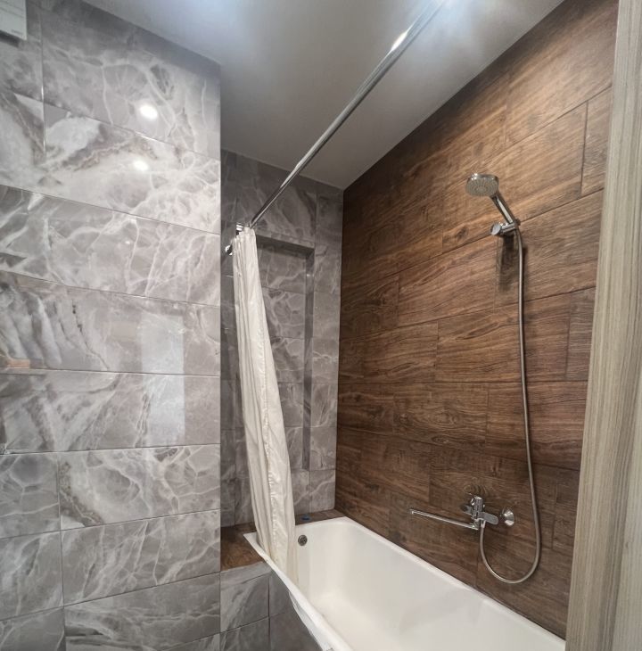 В квартире выполнен дизайнерский ремонт: современная мебель на кухне и в жилой зоне создаёт атмосферу уюта и комфорта. К вашим услугам вся необходимая техника: кондиционер, холодильник, посудомоечная машина, телевизор и стиральная машина. Санузел совмещённый, с ванной, что особенно удобно.