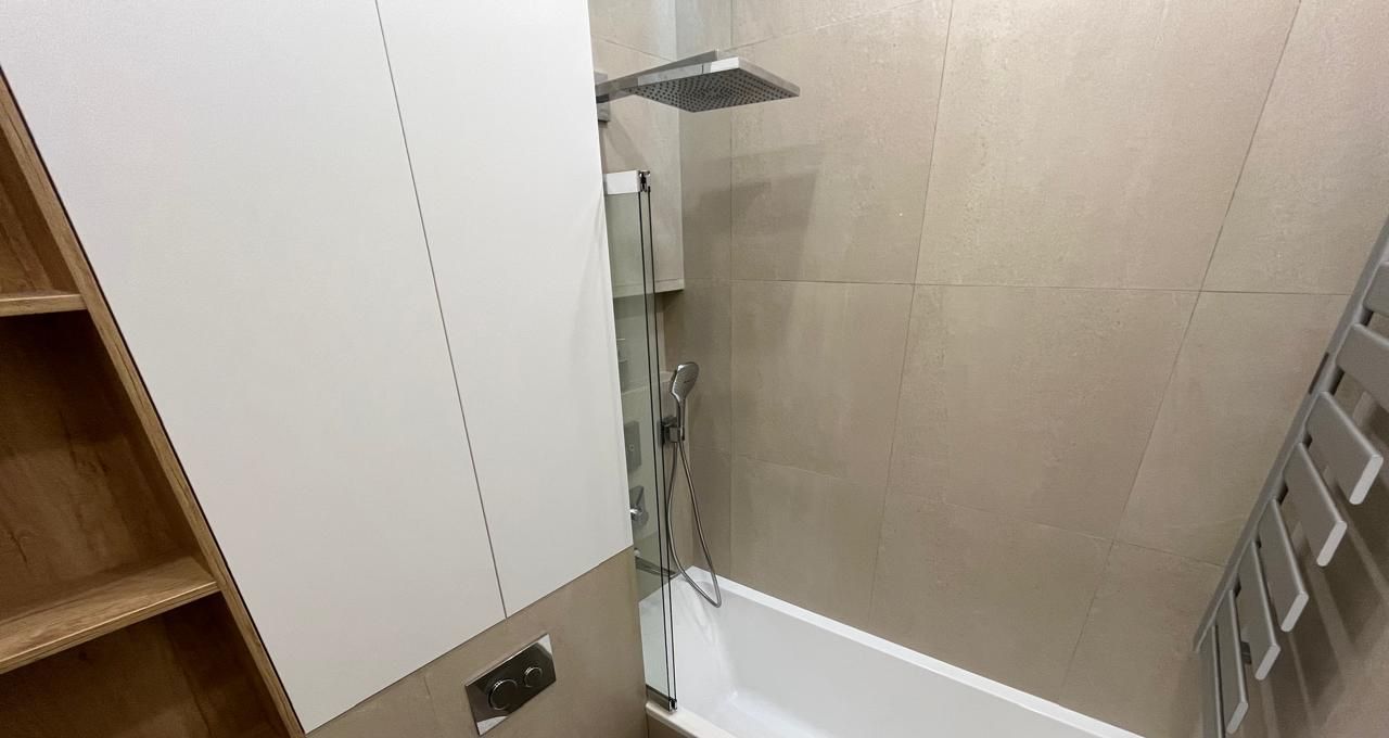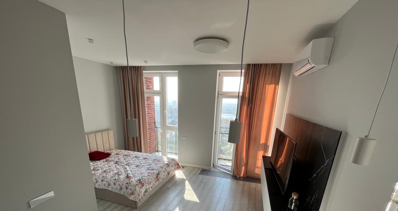 В квартире есть всё необходимое для комфортной жизни. Просторная комната оборудована современной мебелью, а также всей необходимой техникой: кондиционер, холодильник, посудомоечная машина, телевизор и стиральная машина. В совмещённом санузле установлена ванна. На двух балконах приятно проводить время на свежем воздухе.