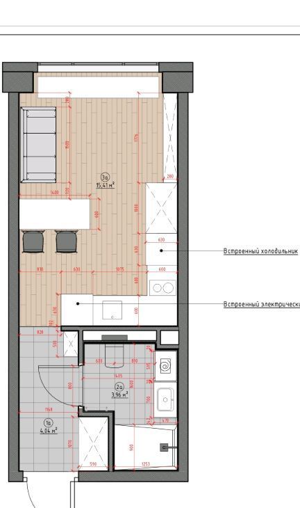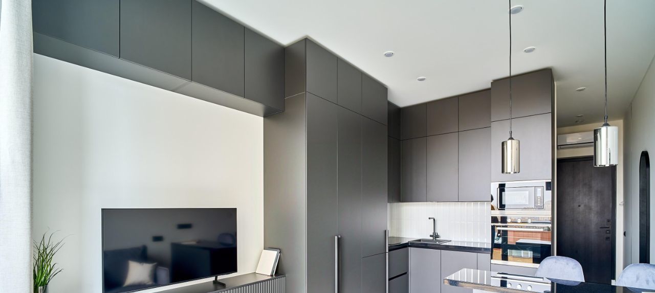 Площадью в 23.9 кв м, квартира спланирована с учётом эргономики и обеспечена достаточным количеством мест для хранения.