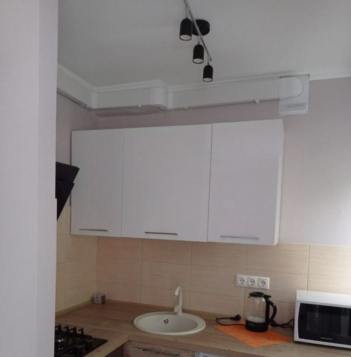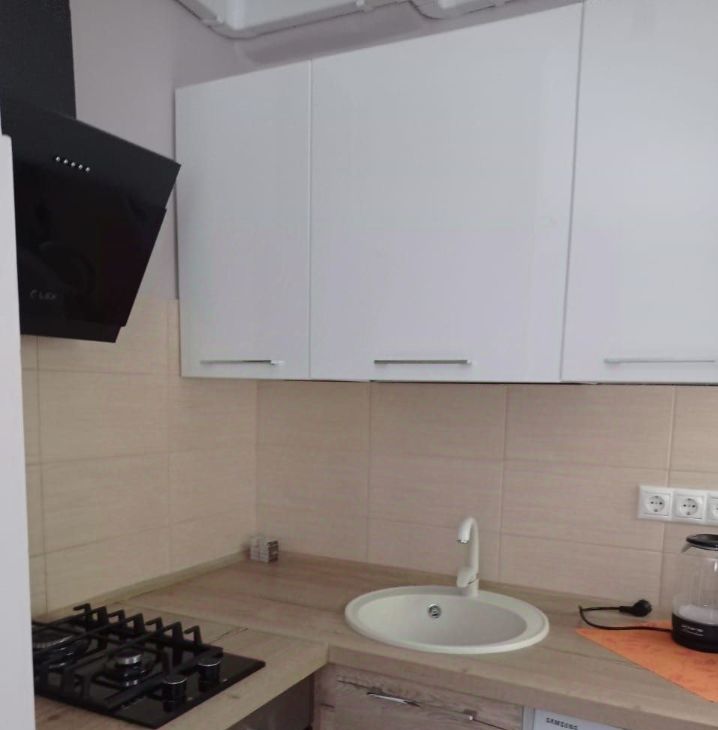 Квартира укомплектована мебелью. Кухня полностью подготовлена к хозяйственной деятельности, бытовая техника в наличии. Есть холодильник, духовой шкаф, стиральная машина, телевизор. Санузел совмещенный, выложен плиткой до потолка. Установлена ванна, что создает дополнительный комфорт.
