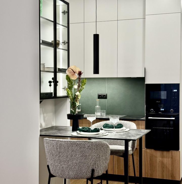 В квартире сделан качественный ремонт, установлена хорошая мебель и бытовая техника. Для комфортного проживания предусмотрено: большое количество мест для хранения, теплый пол во всей студии, кондиционер, стиральная машина с сушкой, полноразмерный холодильник, кровать со спальным местом 2х1,6 м. и хорошим матрасом, разные сценарии освещения и многое другое