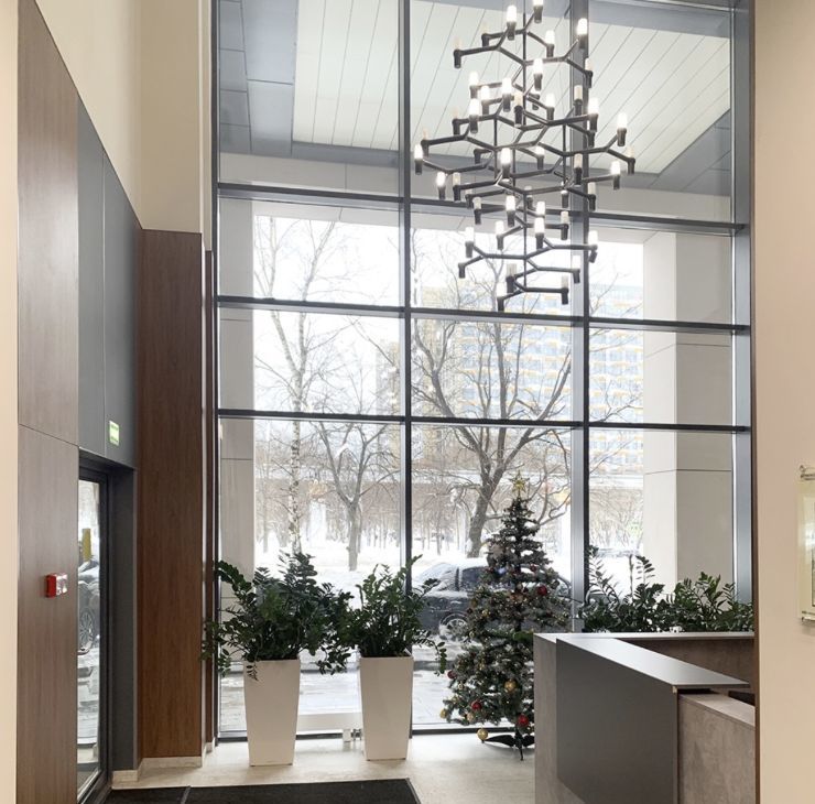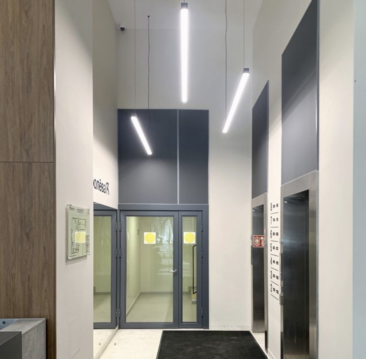 В доме имеются два пассажирских и два грузовых лифта, а также наземная парковка.