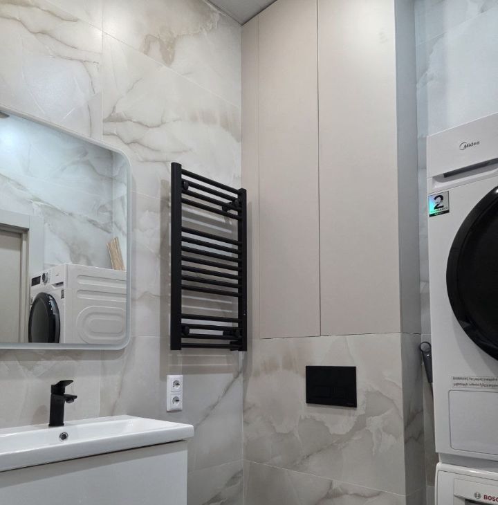 В студии выполнен качественный евроремонт, который подчеркивает современный стиль и уют. Квартира полностью меблирована, мебель есть как на кухне, так и в комнате, поэтому вы сможете сразу переехать без лишних хлопот. Ванная комната оборудована ванной стиральной и сушильной машинами, а на кухне установлена вся необходимая техника: кондиционер, холодильник, посудомоечная и стиральная машины. Интернет уже подключен, поэтому можно сразу наслаждаться комфортом.