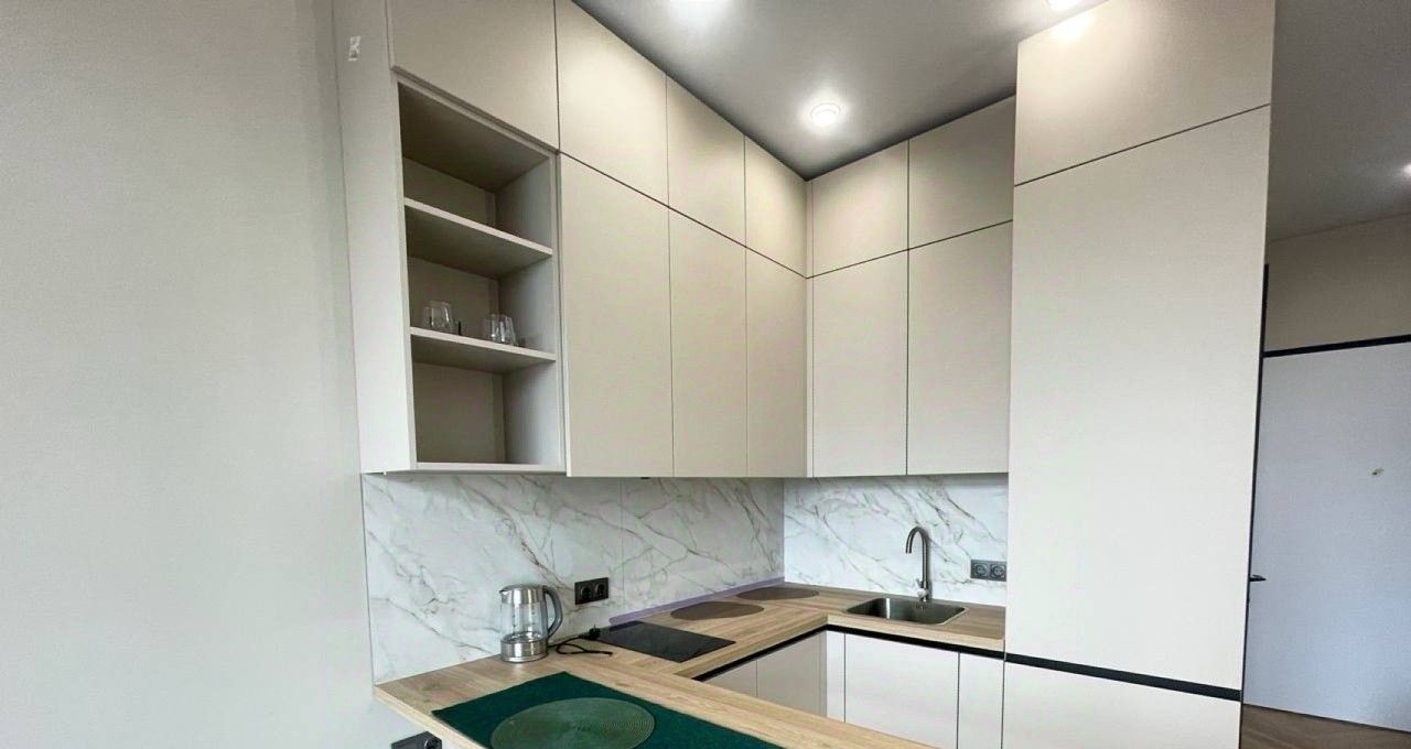 Студия площадью 25 м² продумана до мелочей. Просторная комната совмещает функции спальни и гостиной, а кухня оснащена всей необходимой техникой и мебелью. Вас ждет светлый интерьер с панорамными окнами на улицу, высокие потолки 3.15 м и французский балкон. Квартира полностью укомплектована мебелью и техникой, включая кондиционер, посудомоечная машину, стиральная машину и телевизор.