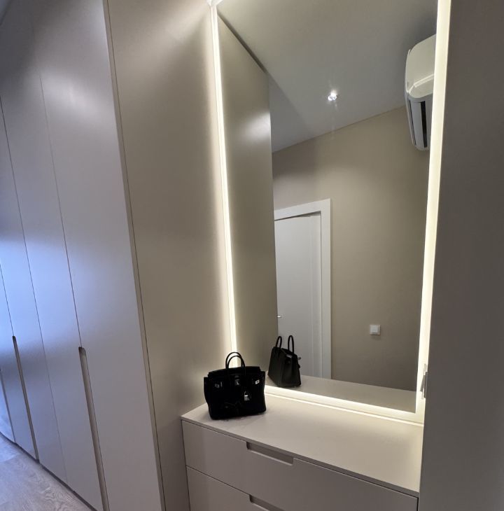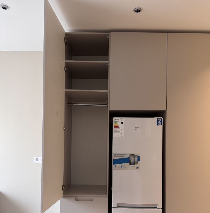 В квартире стоят очень дорогие шкафы из натурального дерева, есть вся необходимая бытовая техника для комфортного проживания (Холодильник, варочная поверхность, микроволновка, полотенцесушитель, стиральная машина идёт сразу с сушкой ).
