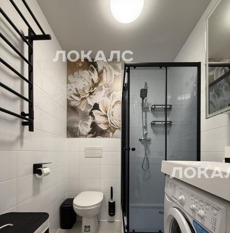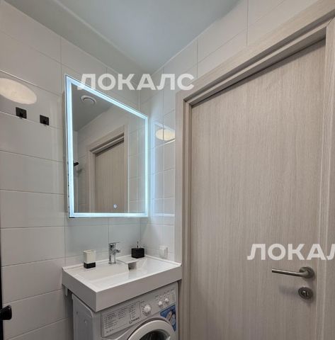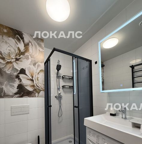 - Ванная комната: душевая кабина, стиральная машина, зеркало с подсветкой.