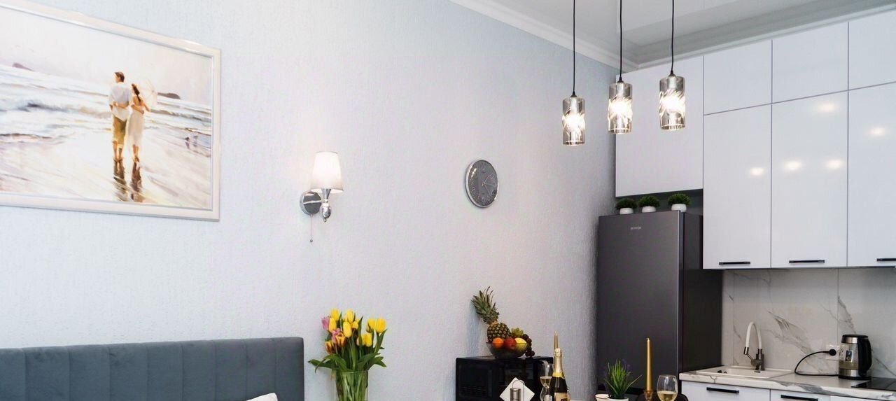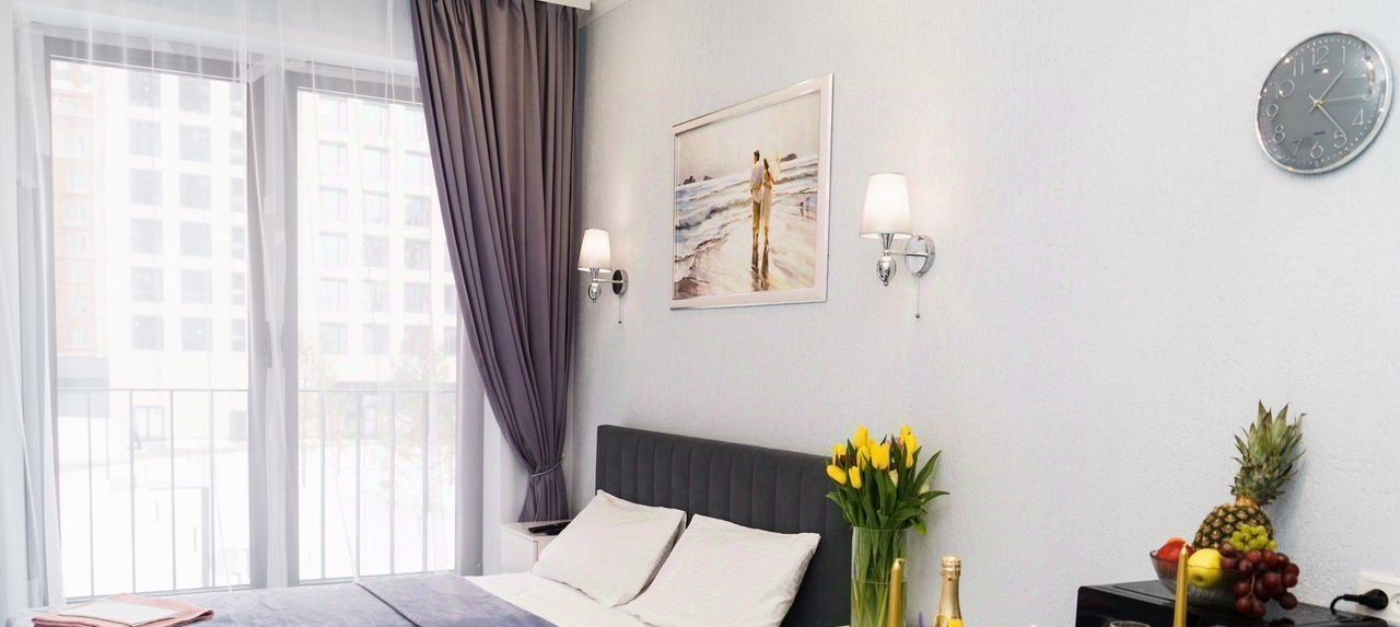 Полностью оборудована бытовой техникой и мебелью студия готова к заселению.