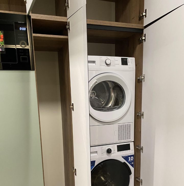 В квартире только закончили дизайнерский проект, ранее не сдавали и никто не жил. Только после ремонта! Есть вся необходимая мебель и бытовая техника. Из техники: холодильник, варочная панель, свч, стиралка, сушилка. Кровать трансформер, из дивана превращается в полноценную кровать со спальным местом 140/200., а также есть возможность докупить и установить посудомоечную машину, есть кондиционер.