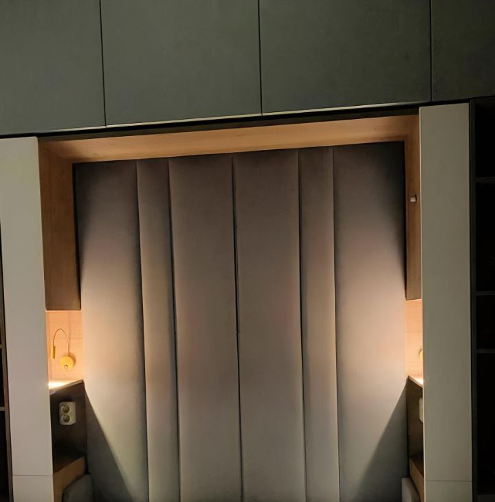 В квартире сделана шумоизоляция всех стен, потолка и пола. Хорошо развитая инфраструктура района. Есть подземный паркинг и машиноместо, стоимость 15.000₽ в месяц.
