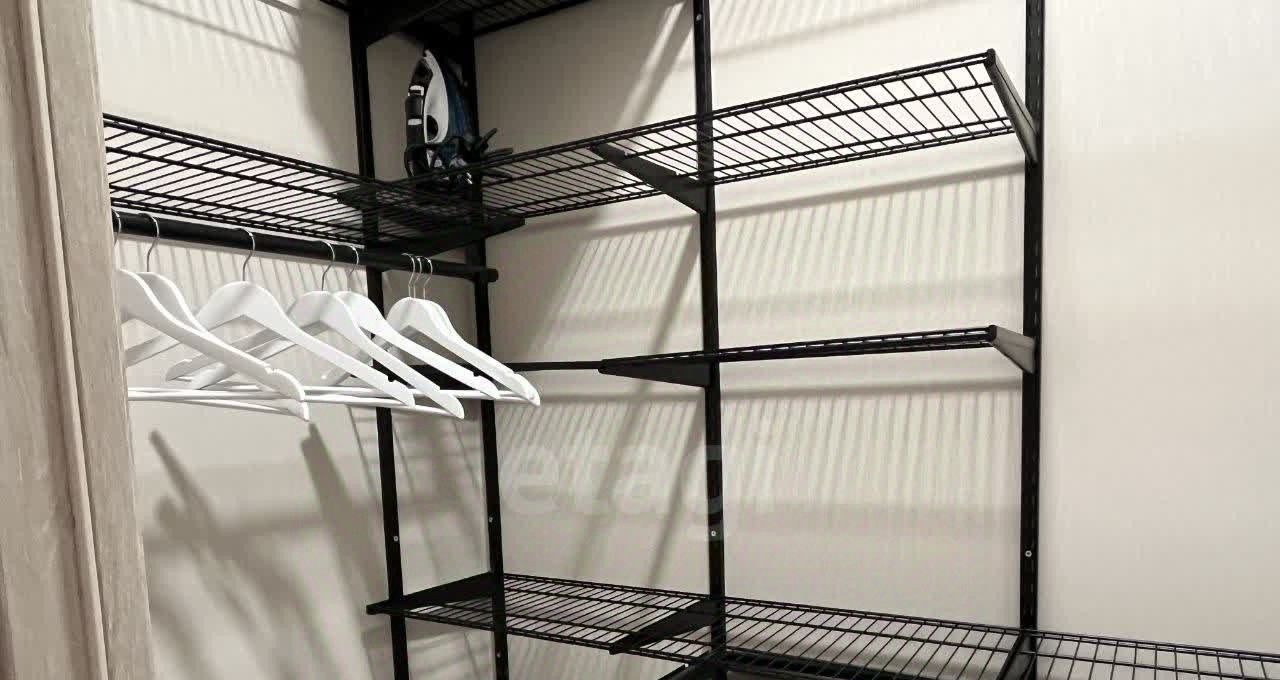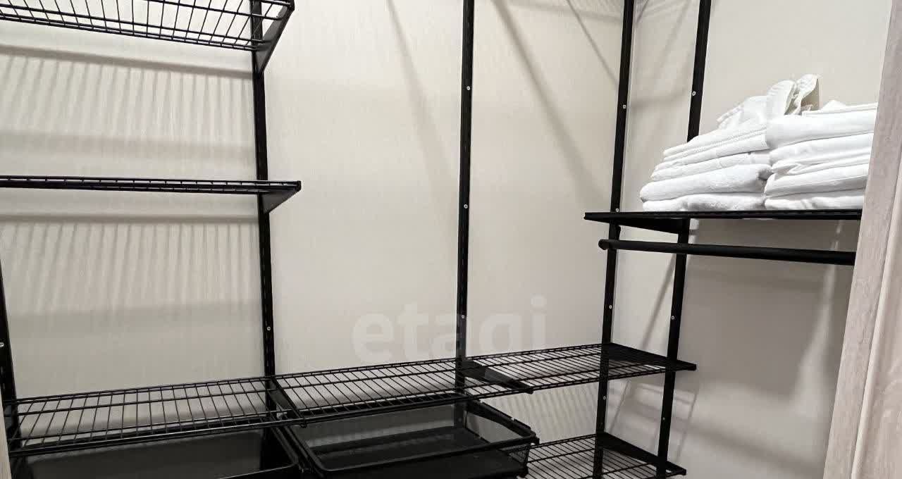 Особенность планировки — наличие просторной гардеробной зоны, что для студийного формата является значимым преимуществом, обеспечивая дополнительный комфорт и порядок.