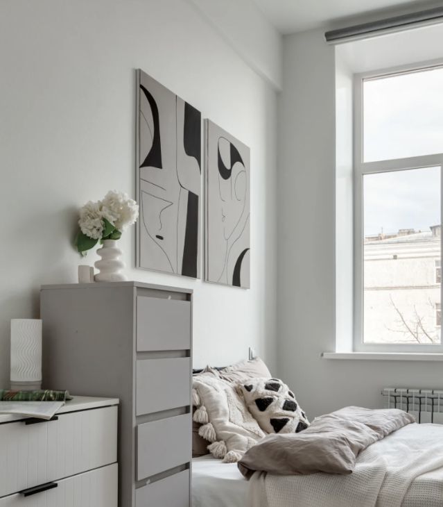 Светлые пастельные оттенки визуально увеличивают пространство, а минималистичный интерьер позволяет добавить детали на свой вкус.