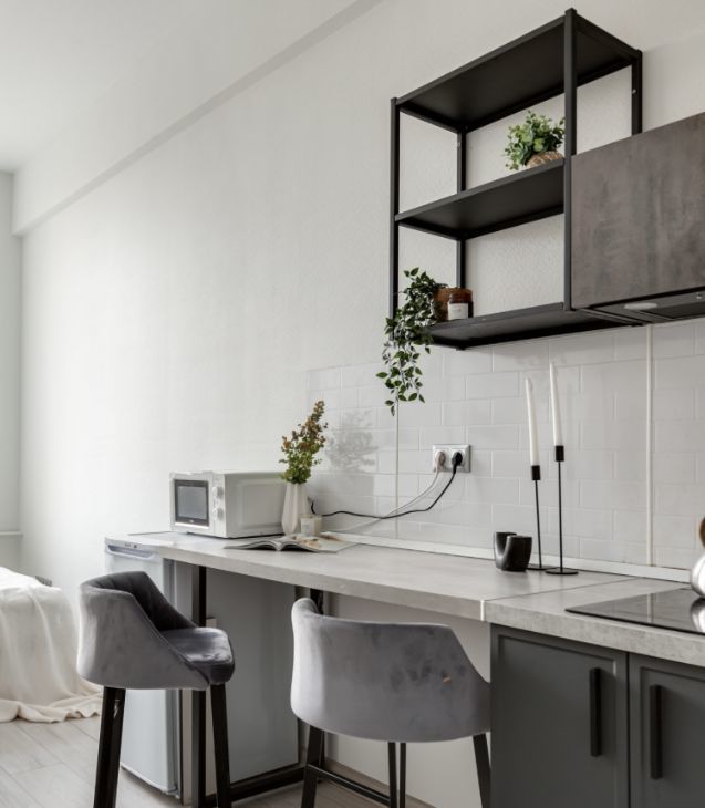 - кухня с барной стойкой, которую можно использовать как рабочее место;
