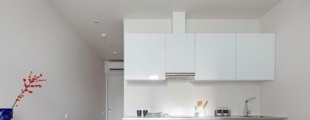 - современный кухонный гарнитур; - компактный обеденный стол на две персоны;