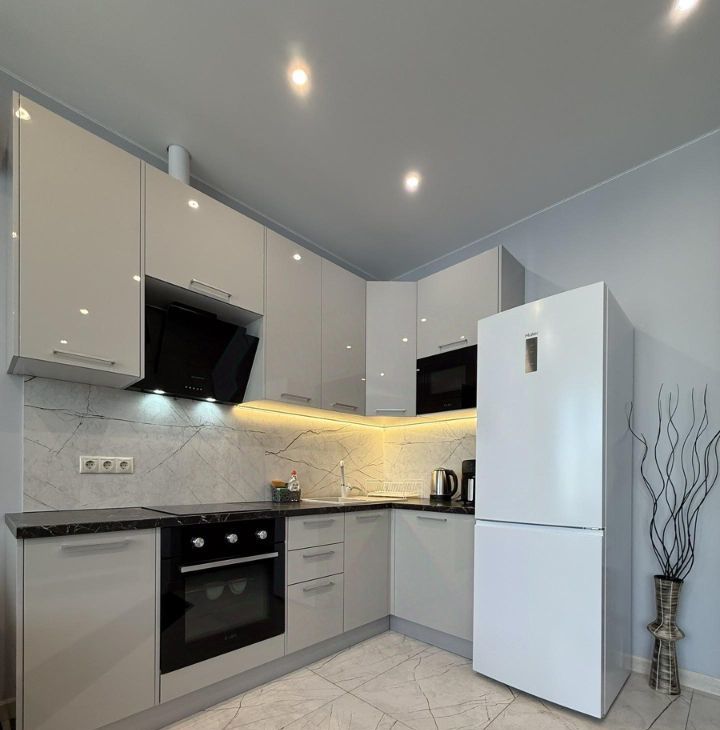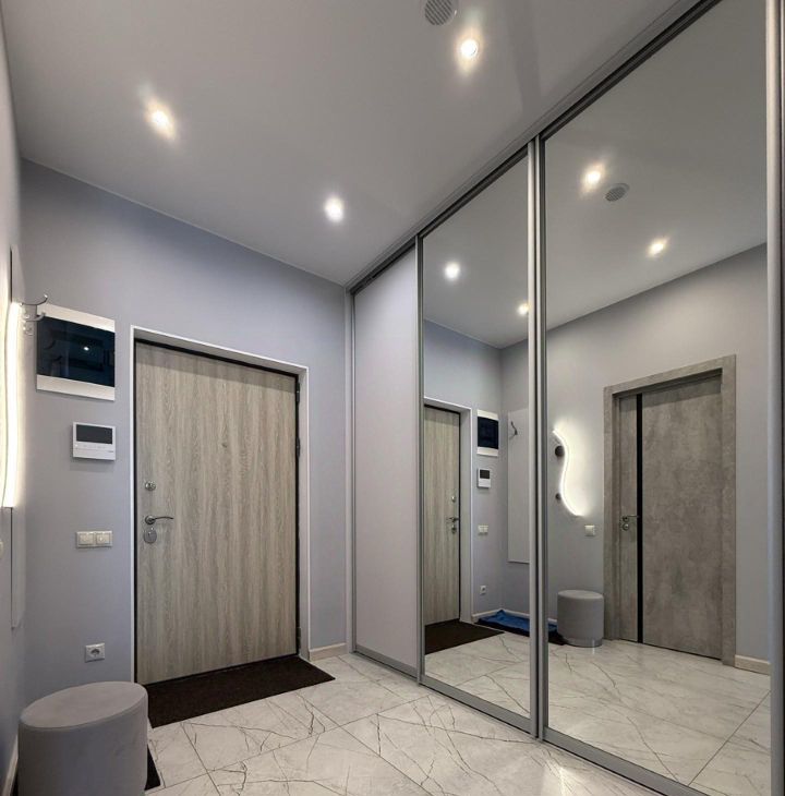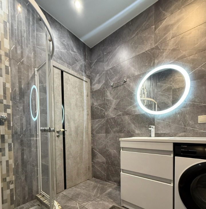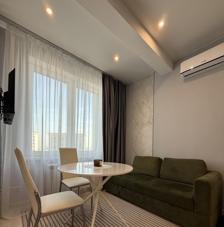 В квартире выполнен качественный дизайнерский ремонт. Планировка с зонированием спальни, полноценная кухня и совмещенный санузел. Есть вся необходимая мебель и техника, также в наличии водонагреватель, гигиенический душ, по периметру теплые полы. Облагороженный двор, закрытая детская площадка, подземный паркинг через домовой чат.
