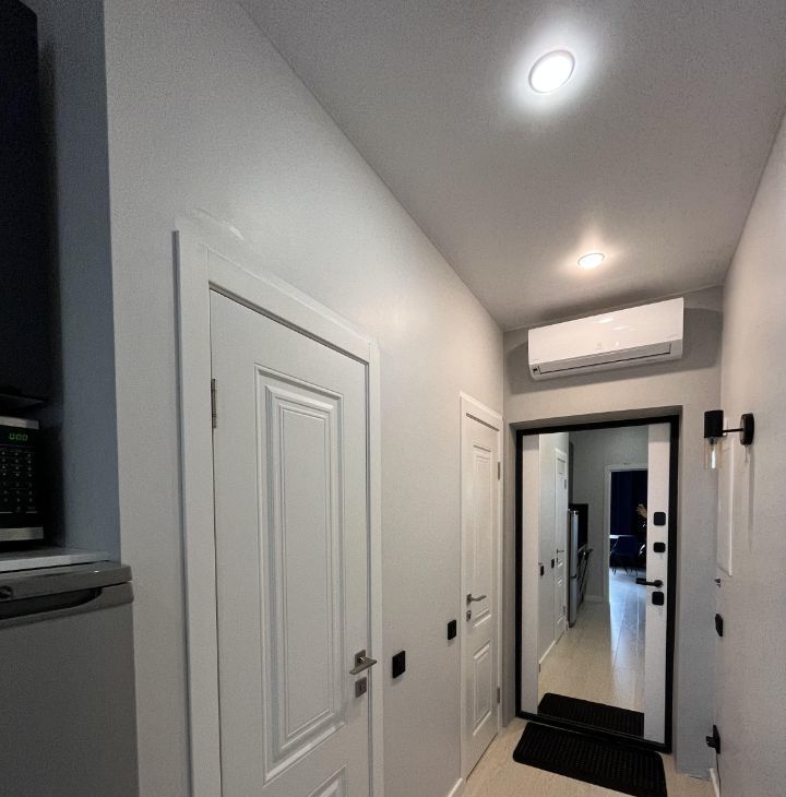 В квартире также есть все, что нужно, помимо кондиционера, холодильника, посудомоечной машины, микроволновки, варочной поверхности, стиральной машины, есть сушильная машина, что значительно упрощает процесс сушки белья и отсутствия дополнительного инвентаря для его сушки! Есть просторная гардеробная и ванная комната, а также идеально спланированная кухонная зона.