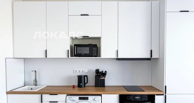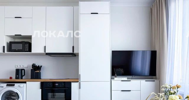 Бытовая техникa: стиральнaя мaшина, xoлoдильник, варoчная пaнель, дуxoвой шкaф, элeктричeский чайник, микроволновая печь.