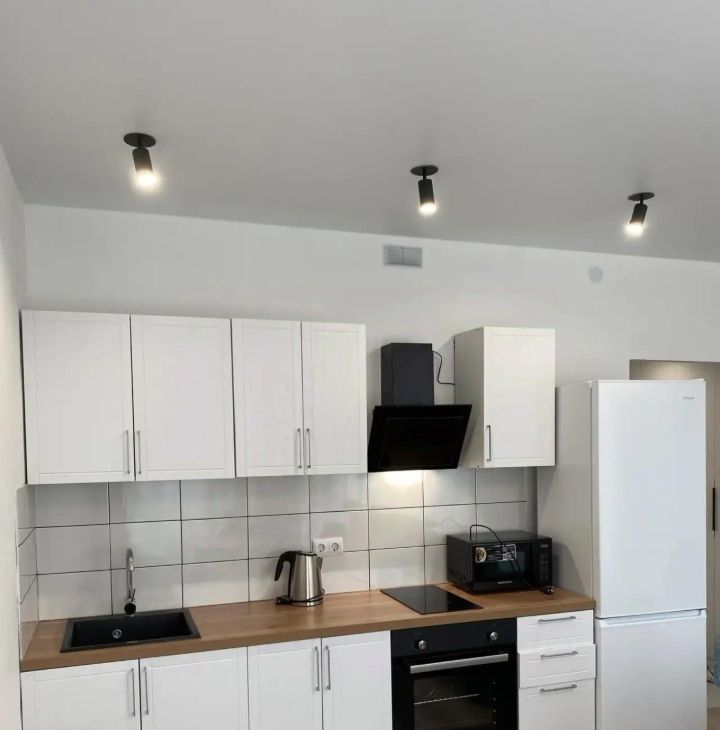В квартире есть все для комфортного проживания: кухня с бытовой техникой (варочная панель и духовка, холодильник, чайник), стиральная машина, телевизор.