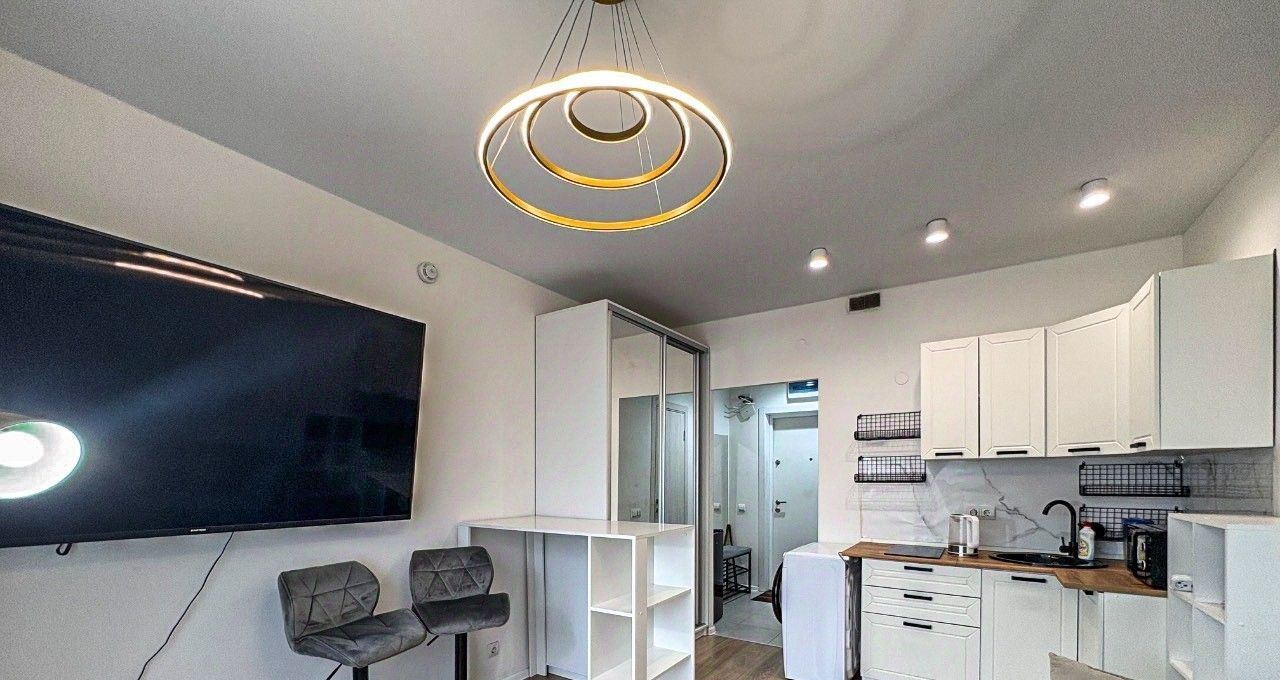 Сдаётся светлая квартира-студия с евроремонтом и совмещённым санузлом в ЖК Саларьево Парк, без депозита!