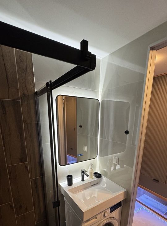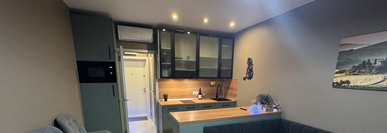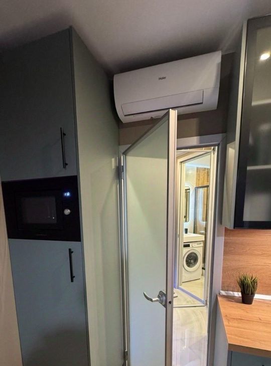 В квартире выполнен дизайнерский ремонт, который создаёт атмосферу комфорта и уюта. Вся необходимая техника уже установлена: кондиционер, холодильник, посудомоечная машина, стиральная машина и телевизор. Санузел совмещённый и оборудован душевой кабиной.