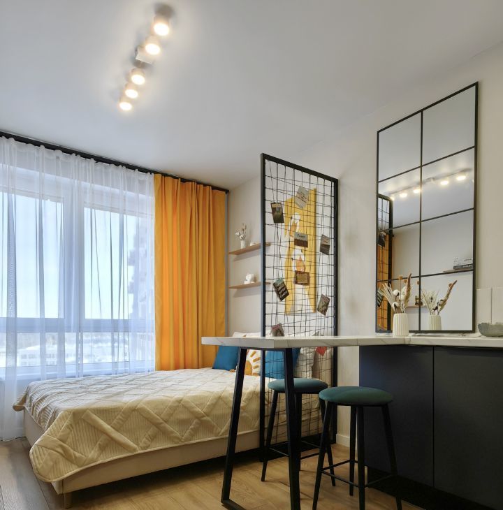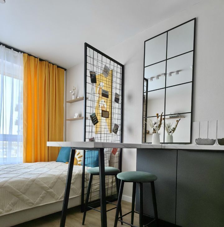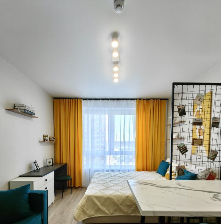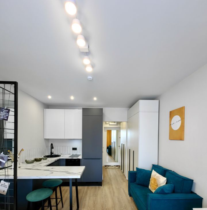 Квартира с дизайнерским ремонтом, в которой каждая деталь продумана до мелочей. Планировка студии максимально функциональна, что позволяет рационально использовать пространство, несмотря на компактную площадь. Окна выходят во двор, поэтому в квартире всегда тихо и спокойно.