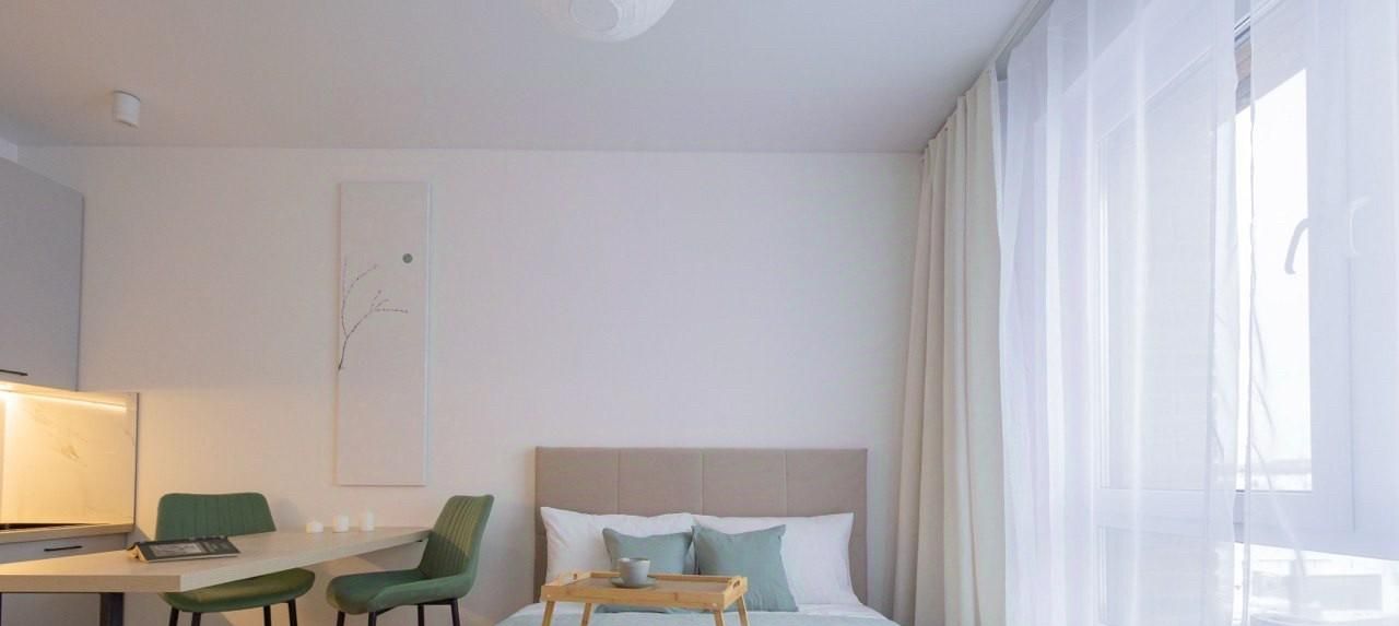 Сдается студия с современным евро ремонтом в монолитном доме 2024 года постройки. В квартире выполнен свежий ремонт, стены и полы выполнены в светлых тонах, что создает ощущение простора и уюта. Просторная кухня оборудована всей необходимой техникой: холодильник, плита, духовой шкаф и вытяжка. Из мебели — вместительные шкафы и обеденный стол с двумя стульями. Кровать с подъемным механизмом.