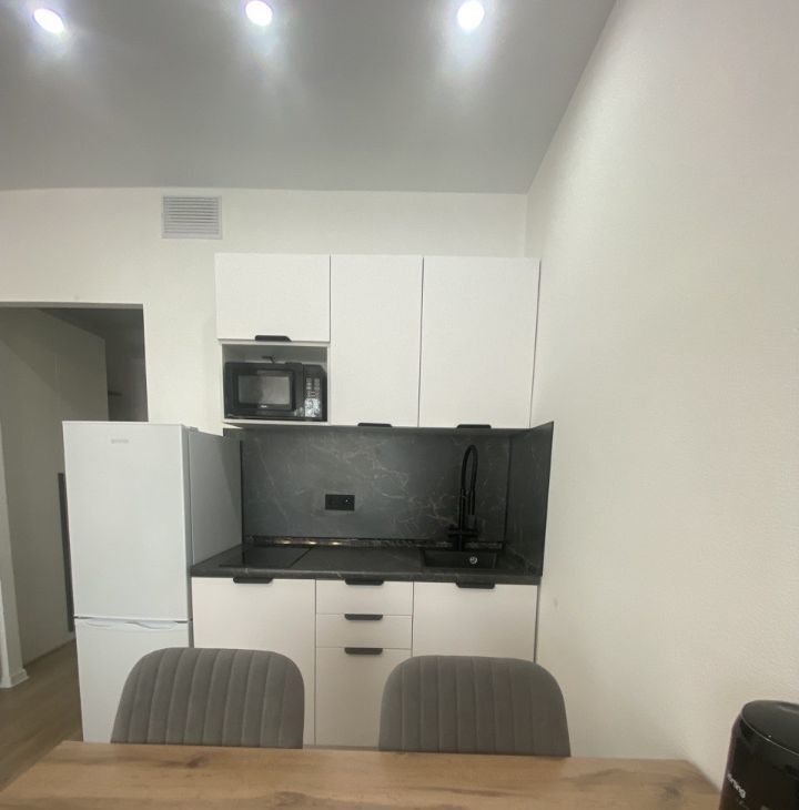 Есть все необходимое для комфортного проживания, все новое: кухонный гарнитур, варочная панель, СВЧ, чайник, холодильник, проточный фильтр для воды, двуспальная кровать с подъемным механизмом и новым матрасом, телевизор смарт, интернет, стиральная машина. Много места для хранения вещей: два вместительных шкафа, комод.
