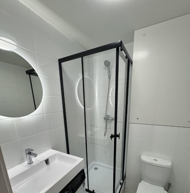 Квартира оформлена в дизайнерском стиле, что придаёт ей особую атмосферу уюта и комфорта. В комнате уже есть мебель, а также вся необходимая техника: холодильник, посудомоечная машина, телевизор и стиральная машина. Санузел совмещённый, оборудован душевой кабиной, что удобно и практично.