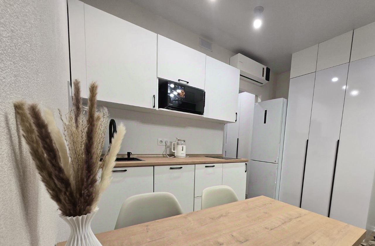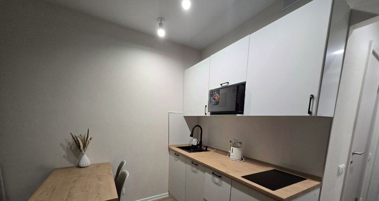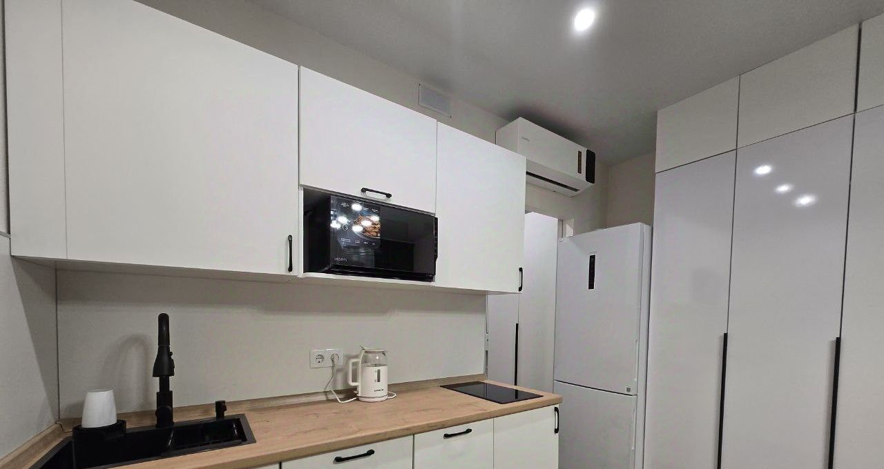 В квартире уже есть всё необходимое для комфортного проживания: кухонный гарнитур, мебель и бытовая техника — микроволновая печь, посудомоечная машина, холодильник с морозильной камерой, стиральная машина, Smartтелевизор, кондиционер. Много мест для хранения одежды. Полы — ламинат и плитка. Окна выходят во двор, из окон — приятный вид. Территория ЖК закрыта, двор без машин. Рядом — бесплатная парковка.