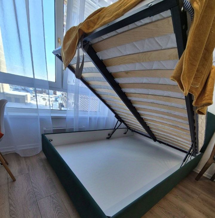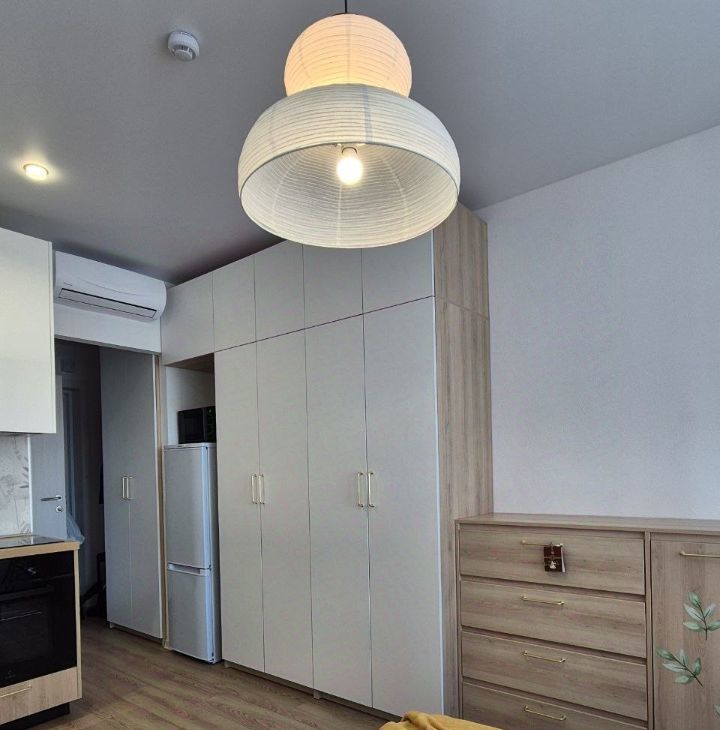 В квартире кухонный гарнитур, мебель и техника, установлен кондиционер. Много мест хранения, а именно 3 двустворчатых шкафа, комод, кровать с подъемным механизмом.