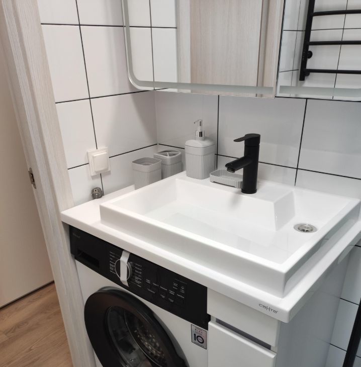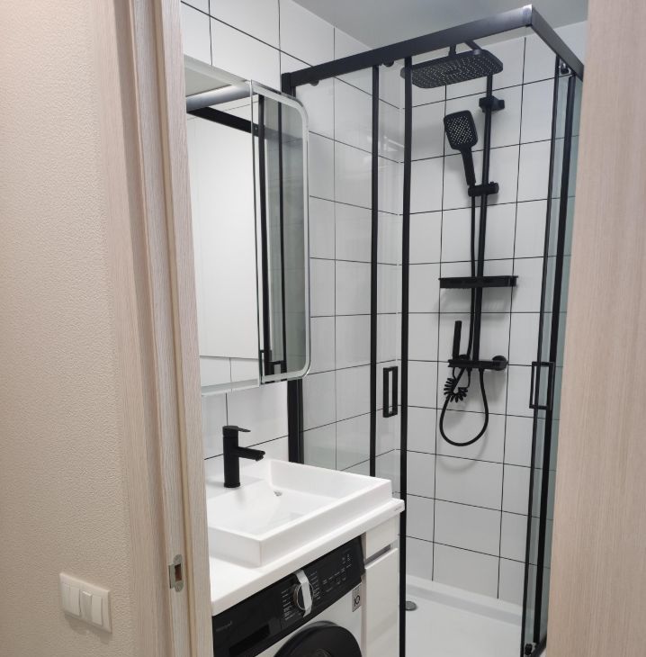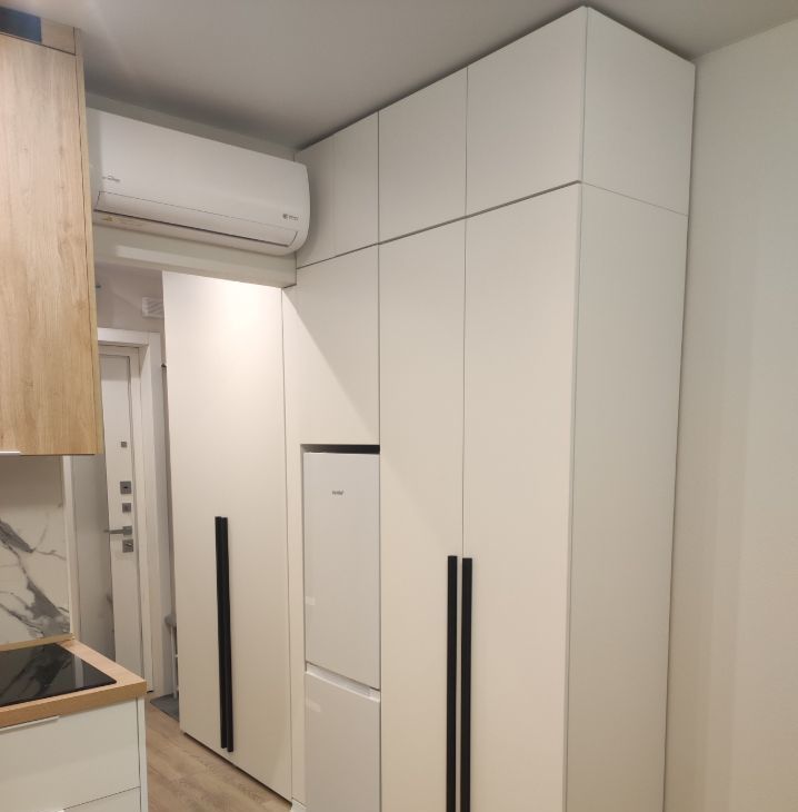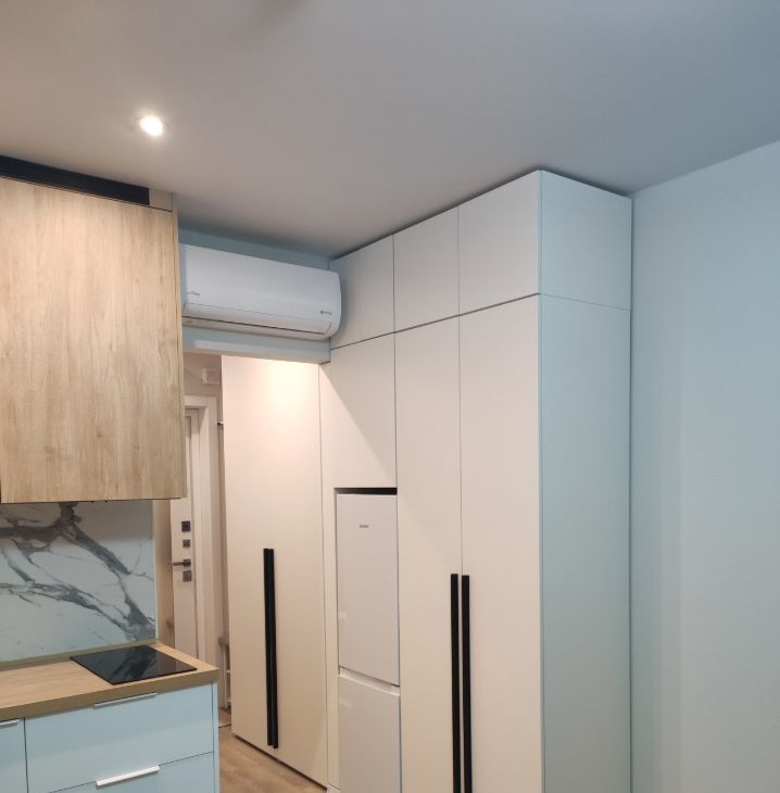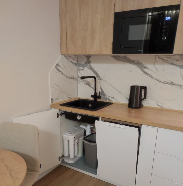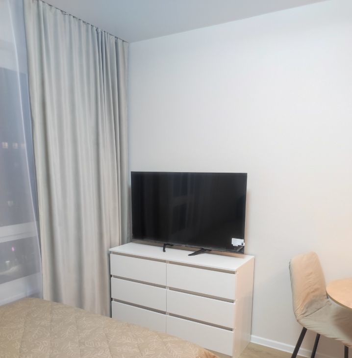 Для комфортного проживания имеются инверторный кондиционер, телевизор 50 дюймов, фильтр очистки питьевой воды Осмос, микроволновая печь, индукционная варочная панель, вытяжка, холодильник с морозильной камерой, стиральная машина, электрический полотенцесушитель, утюг, чайник. Все шкафы с доводчиками.