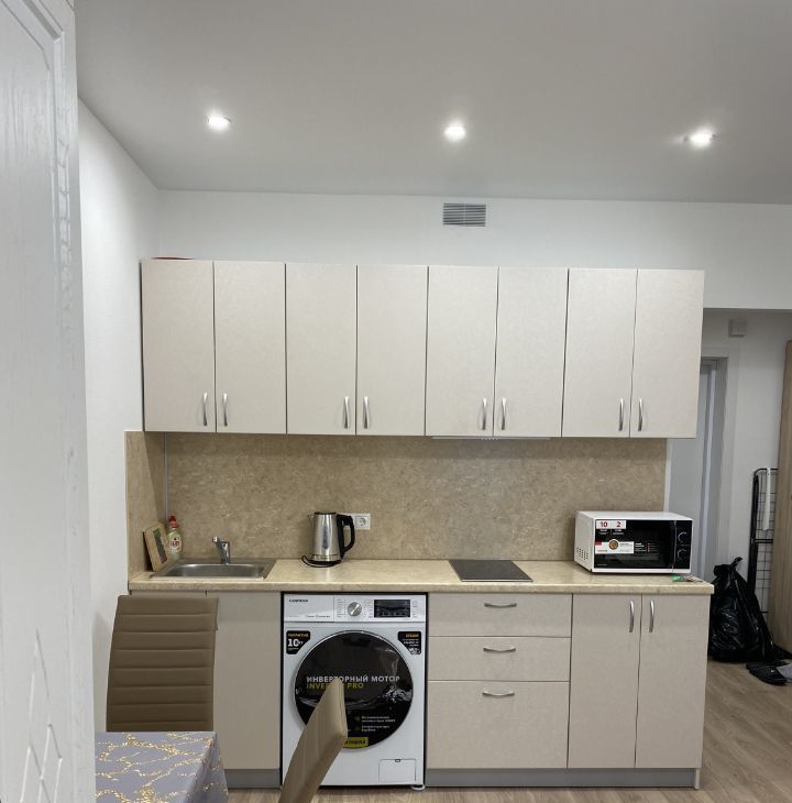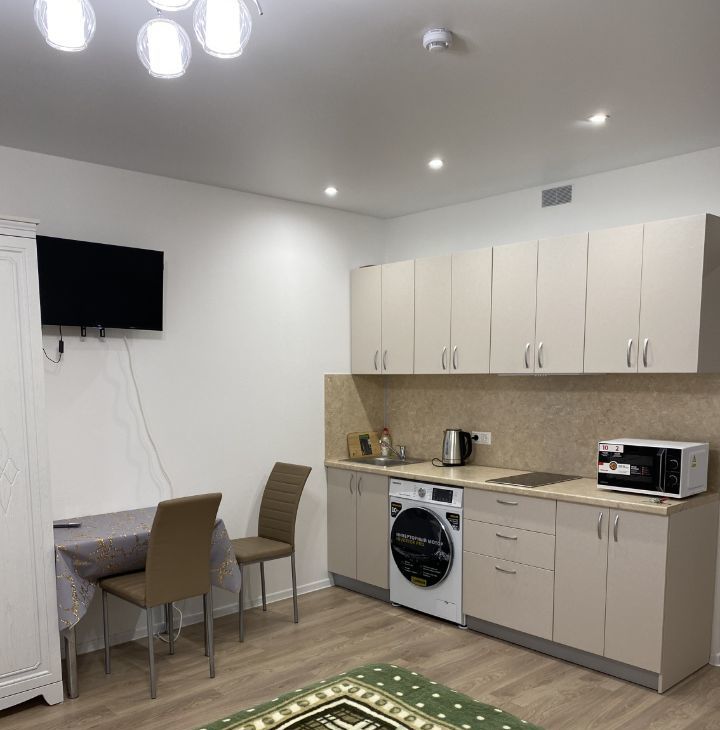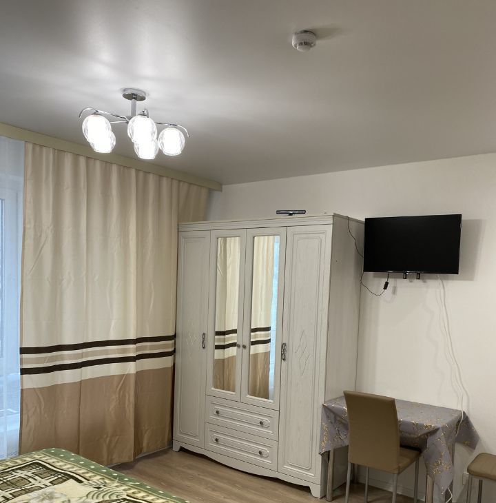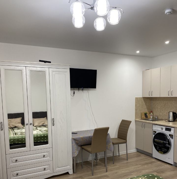 На длительный срок сдается квартира- студия с новым ремонтом и абсолютно всей новой мебелью и техникой. удобная кровать,шкаф для хранения одежды, новая стиральная машина,вместительный холодильник ,есть все для комфортной жизни,вплоть до утюга,сушилки,гладильной доски и постельного белья.