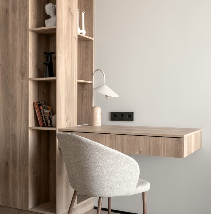 - спальная зона двуспальной кроватью с размером 160/200, прикроватная тумба и шкаф.