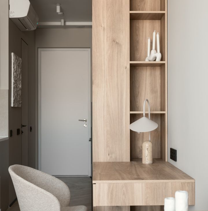 - прихожая зона имеет шкафчики для принадлежнойстей.