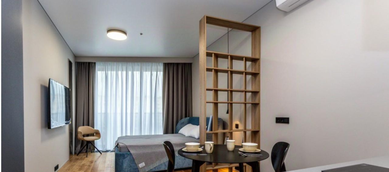Представляем к аренде уникальную студию с дизайнерским ремонтом в современном комплексе бизнес-класса LOGOS, сданном в 2024 году. Это не просто квартира, а готовое к заселению пространство для жизни, где каждая деталь продумана. На 34 квадратных метрах вы найдете гармоничное сочетание эстетики и функциональности. Панорамные окна на 5 этаже открывают светлые виды и наполняют помещение воздухом, а высота потолков в 3 метра усиливает ощущение свободы.