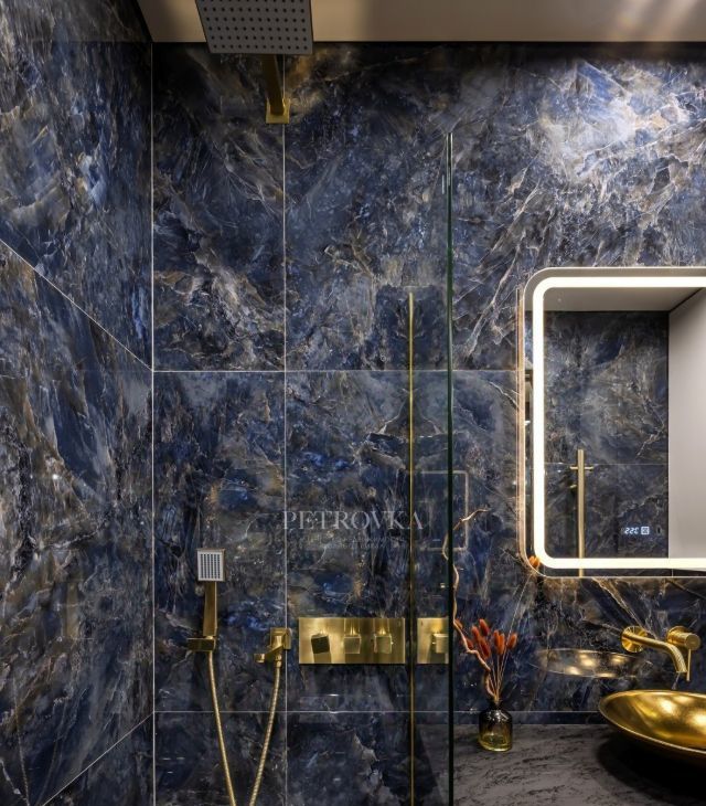 Стиль в каждой детали: Современный дизайн ванной, уютный диван, комфортная кровать и телевизор для релакса после насыщенного дня. Изысканные шторы завершают продуманный интерьер.