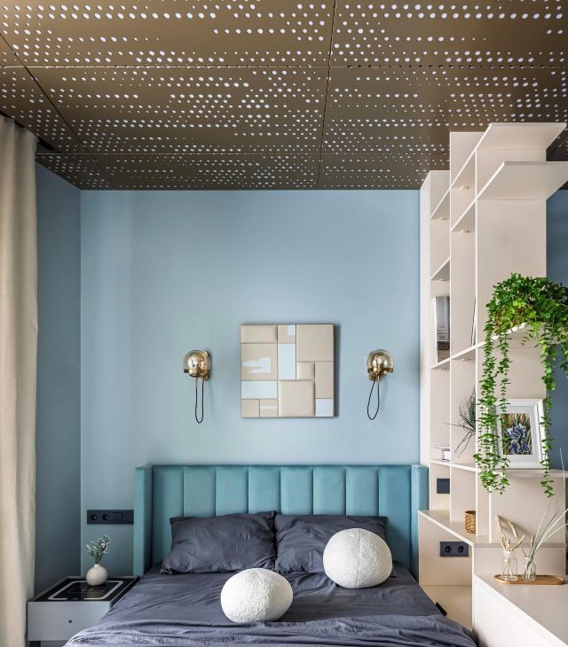 По одной из стен предусмотрена полка в 40 см от потолка — идеальное место для размещения растений.