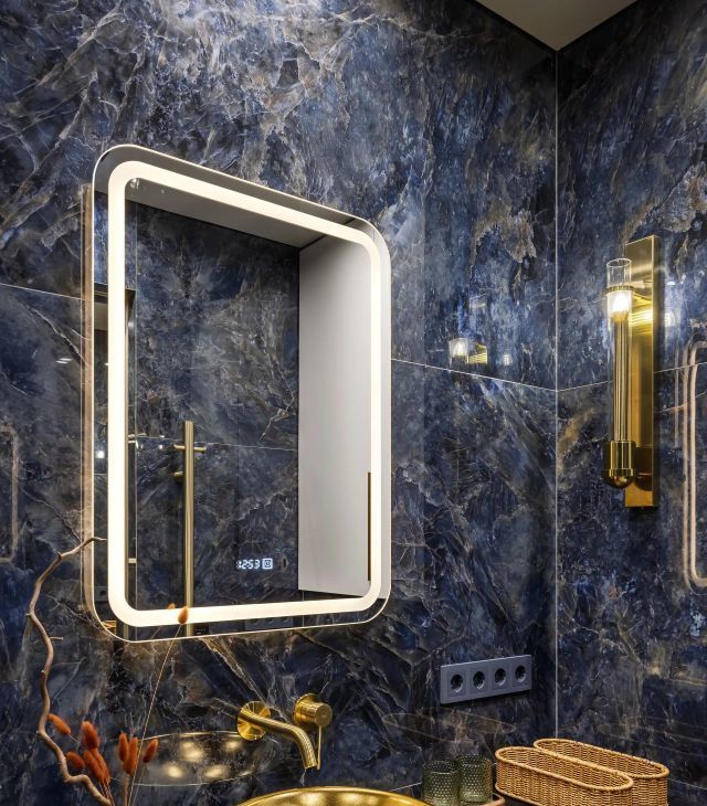 Совмещенный санузел оформлен в элегантной мраморной плитке. Итальянская сантехника, стиральная машина, качественная фурнитура. Спокойная благородная цветовая гамма.