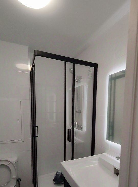 Санузел совмещенный, оборудован душевой кабиной.