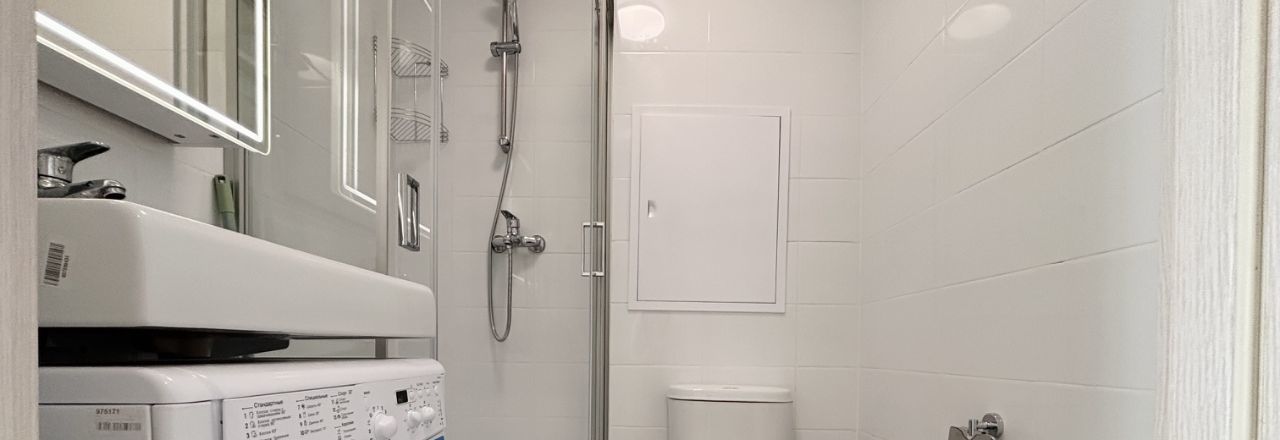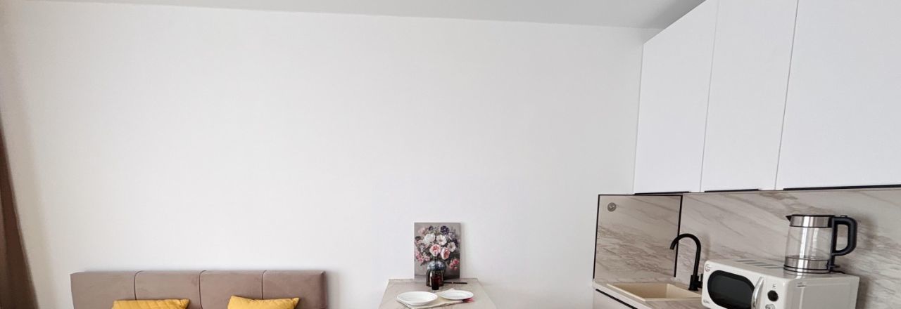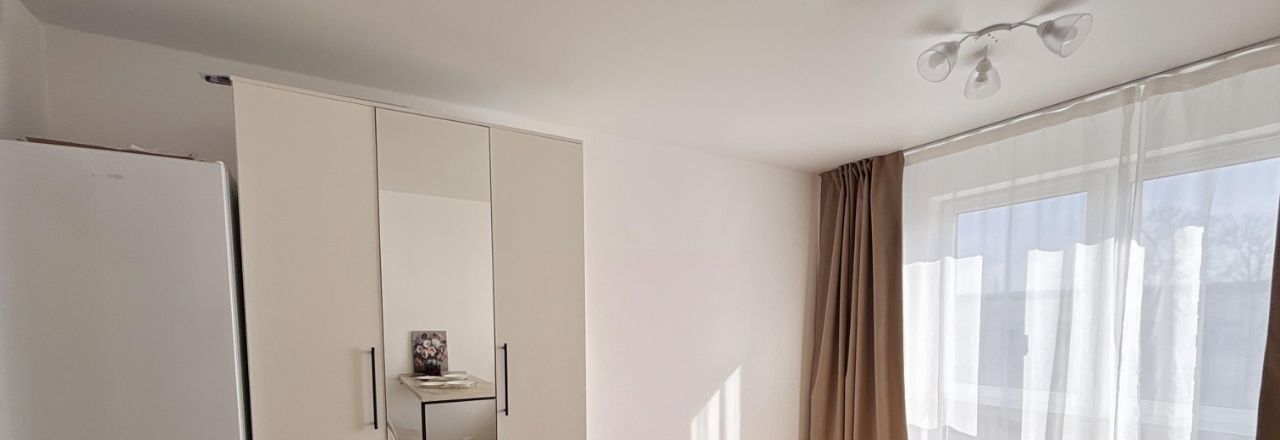 Полностью меблированная квартира! Кухня оборудована техникой, а именно: варочная панель, СВЧ, чайник, вместительный холодильник. Установлена комфортная кровать. Много места для хранения ваших вещей. Совмещенный санузел со стиральной машиной. Имеется пылесос.