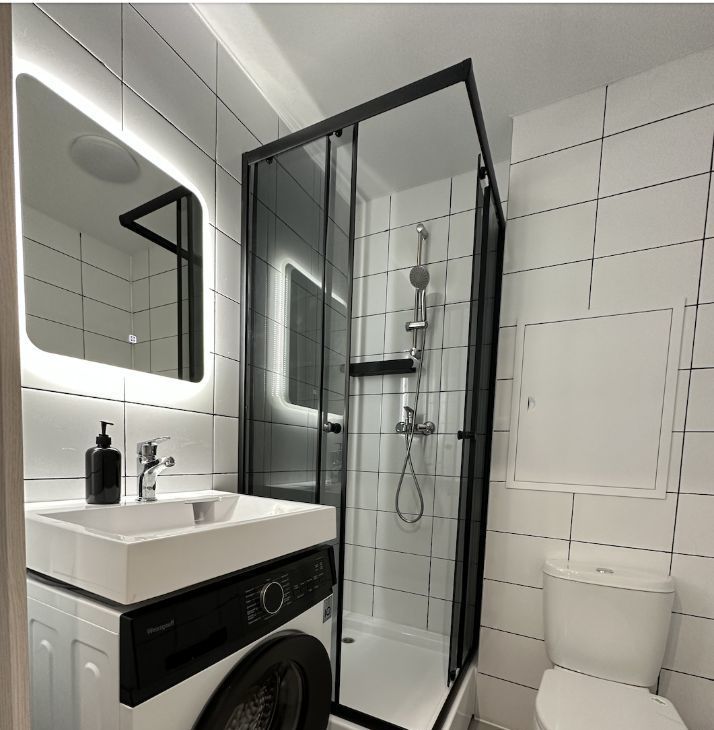 В квартире имеется все необходимое для комфортного проживания: холодильник, кондиционер, стиральная машинка, диван-кровать, кухня с варочной панелью, микроволновка, чайник, телевизор, 2 больших шкафа для хранения вещей.