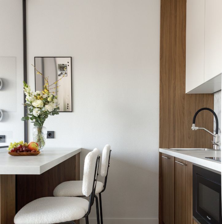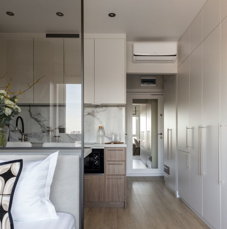 Нежная, утонченная квартира, полностью оснащена всем: качественной, уютной современной мебелью и техникой- холодильник встраиваемый, морозилка, плита, вытяжка, посудомоечная машина, встраиваемая микроволновая печь, стиральная/сушильная машина (2в1), телевизор.