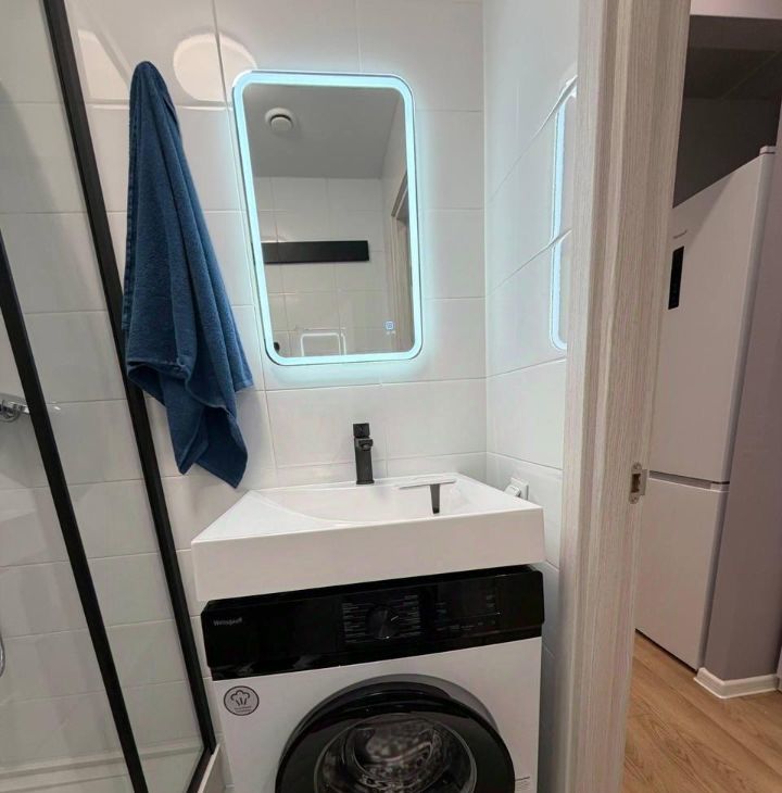 • Кухонная зона и техника: Вся бытовая техника фирмы Weisgauff новая: варочная панель, вытяжка, холодильник, стиральная и посудомоечная машины, встроенная микроволновая печь. Дополнительно телевизор Xiaomi и пылесос Karcher.