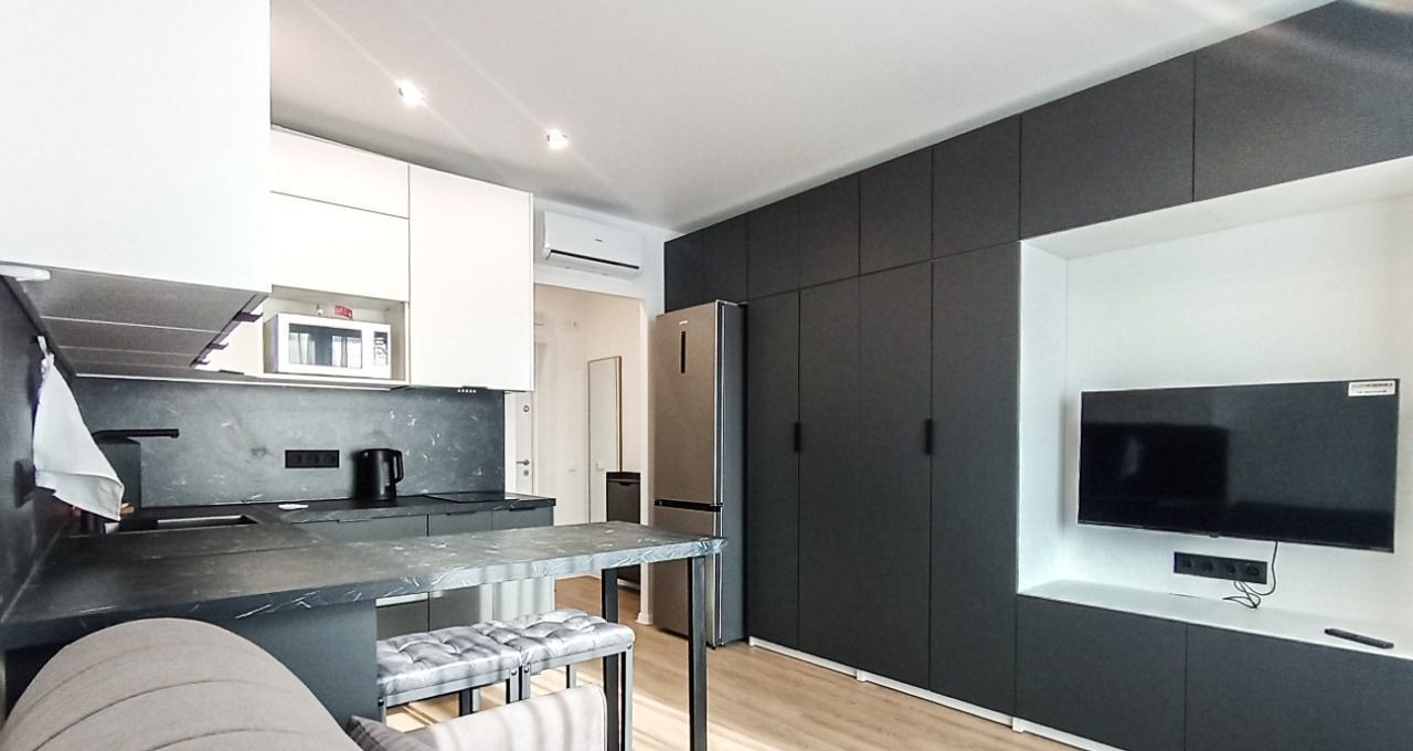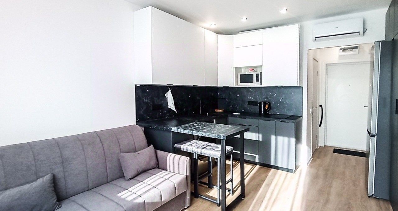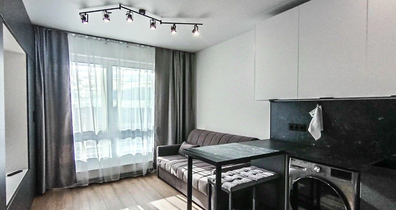 Сдаётся светлая квартира-студия с евроремонтом и совмещённым санузлом в ЖК Руставели 14, без депозита!
