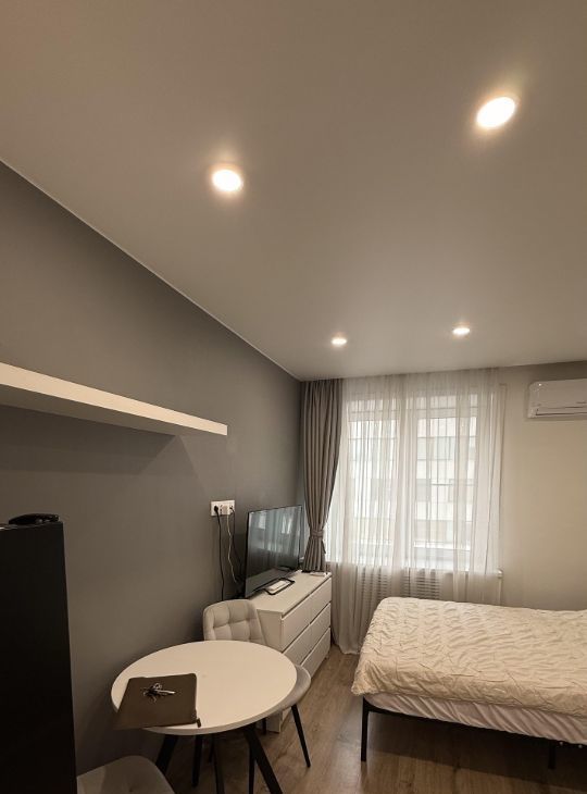 Квартира после евроремонта, оснащена всей необходимой техникой: кондиционер, холодильник, телевизор, стиральная машина. На кухне и в комнате есть мебель, что создаёт комфортные условия для проживания. Санузел совмещённый, оборудован ванной. Окна выходят на улицу, поэтому в квартире всегда светло.