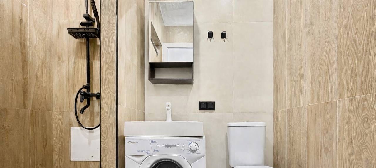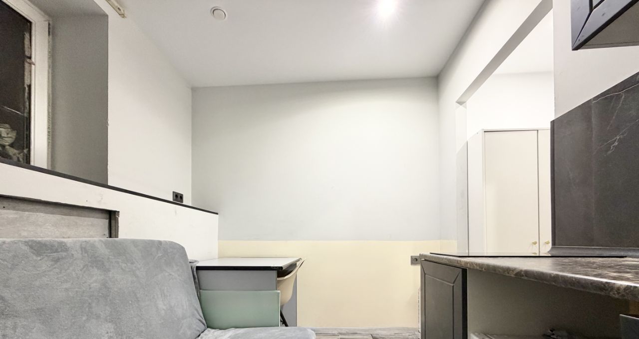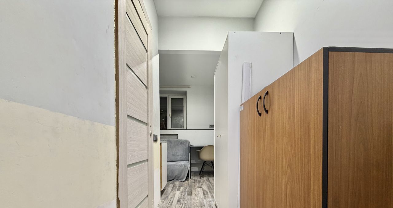 Студия находится на цокольном этаже. Основным преимуществом является то, что собственники на данном этаже не сдают квартиры посуточно, только на длительный срок, поэтому спокойствие и комфортное проживание гарантировано.