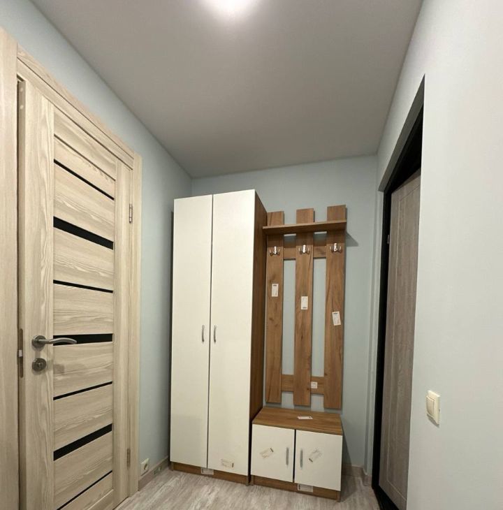 Диван-кровать, шкаф, прихожая, ТВ, холодильник, печь СВЧ, стиральная машина.