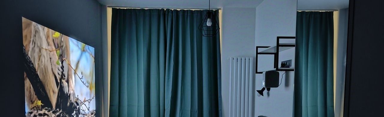 Вместо телевизора современный проектор с доступом к Smart TV.