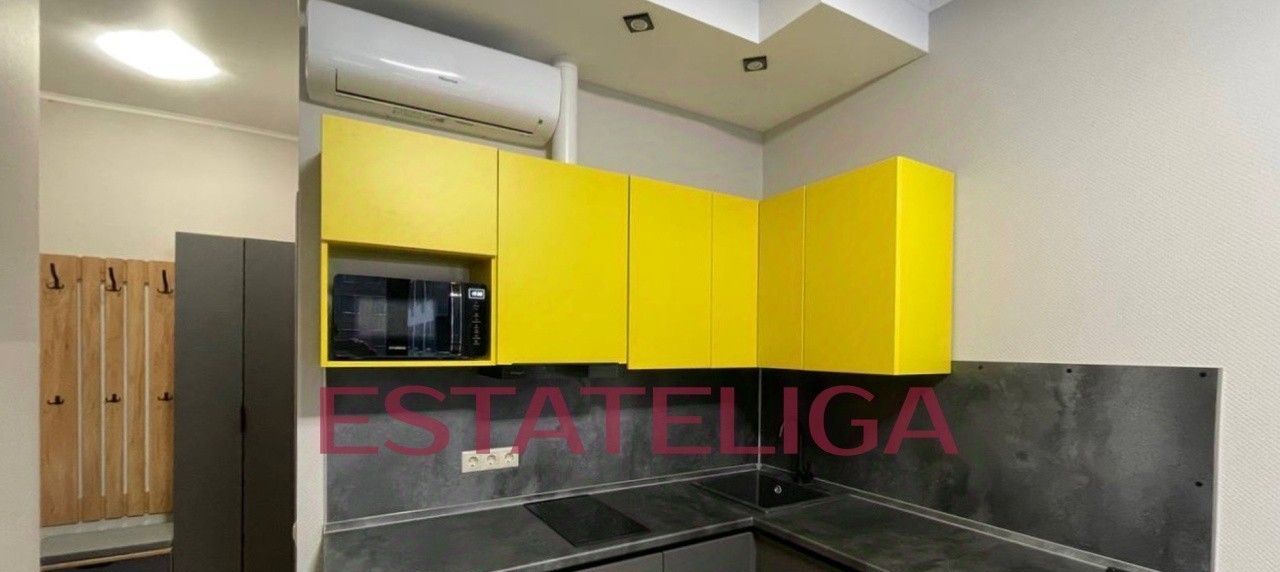 В студии есть все необходимое для жизни, техника известных брендов: холодильник, телевизор, стиральная машина, варочная панель, вытяжка, микроволновая печь. Установлен кондиционер. Студия полностью готова к проживанию!