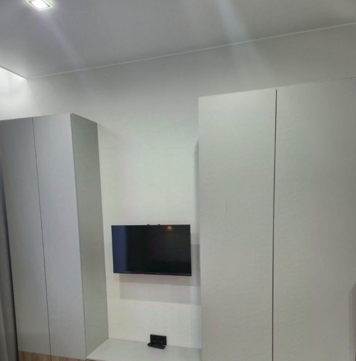 В квартире есть все необходимое для комфортной жизни. Стильный евроремонт подчеркивает современный дизайн. В студии установлена новая мебель как в комнате, так и на кухне. Из техники в наличии кондиционер, холодильник, телевизор и стиральная машина. В ванной комнате установлена душевая кабина, что делает утренние сборы быстрыми и приятными. Окна выходят во двор, поэтому в квартире тихо и спокойно.