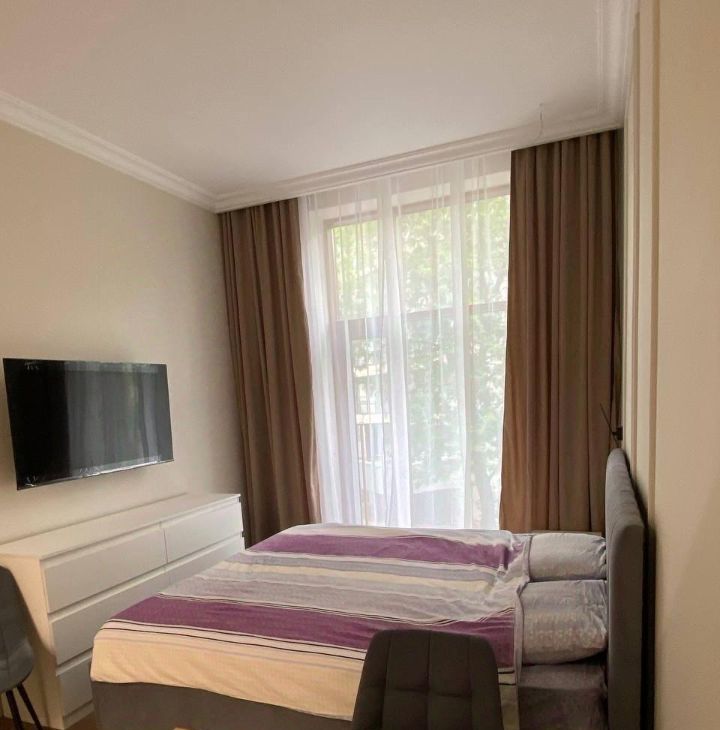 В квартире сделан дизайнерский ремонт, что сразу создает атмосферу уюта и стиля. Пространство студии организовано максимально эффективно: есть вся необходимая мебель как в комнате, так и на кухне. Техника включает кондиционер, холодильник, телевизор и стиральную машину.